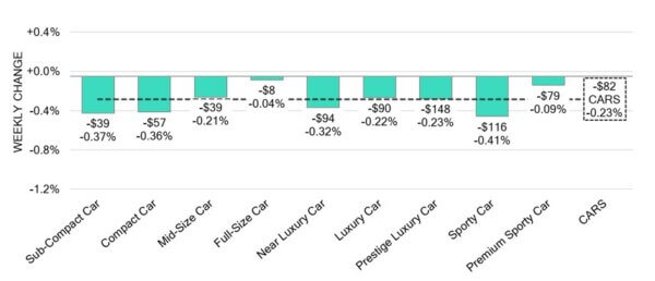 - The least notable declines were in Full-Size Car (-0.04%) and Premium Sporty Car (-0.09%).
