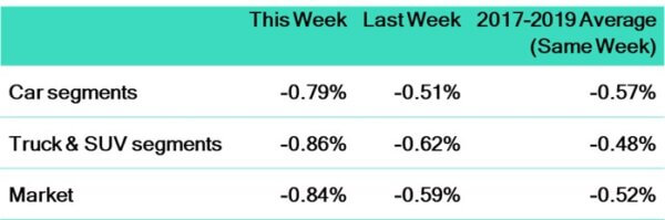 - Segments with the least notable softening were Small Pickup (-0.07%) and Full-Size Van (-0.08%).