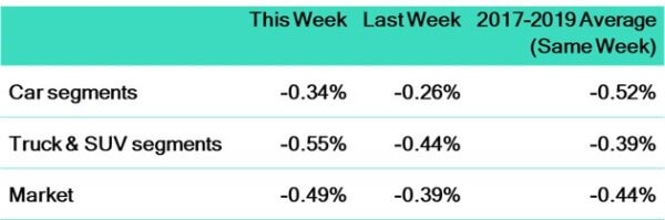 - Truck segments experienced an overall depreciation of -0.12% last week.