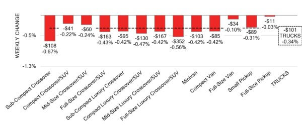 - The smallest declines were seen in Full-Size Pickup (-0.03%) and Full-Size Van (-0.10%).
