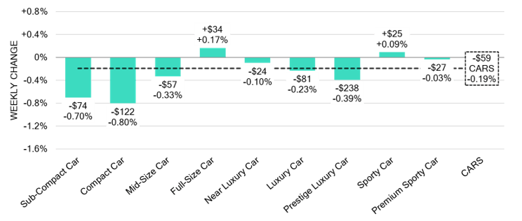 - Last week there was an overall decrease of -0.19% seen in Car segments. This decrease was noted across all but two of the nine segments.