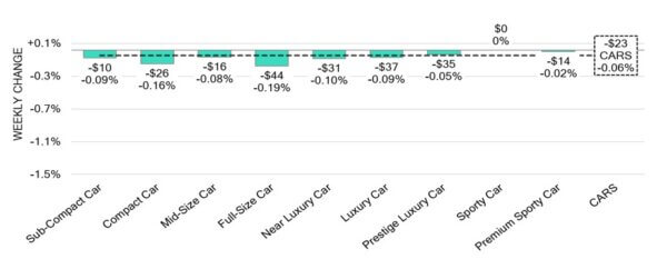 - The most notable drops were recorded in Full-Size Car (-0.19%), Compact Car (-0.16%) and Near Luxury Car (-0.10%).