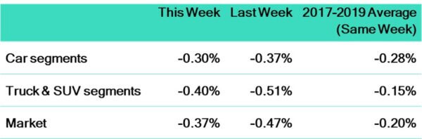 - Truck segments experienced an average depreciation of-0.29% last week, with ten out of thirteen categories posting declines.