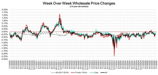 - The overall market continues to decline, though the pace is stabilizing and aligning with typical seasonal depreciation. Retail demand for used vehicles has slowed, as days-to-turn has risen steadily throughout June, nearing 40 days compared to the low-30-day range earlier in the month.