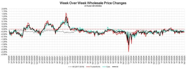 - Wholesale activity last week underscored the industry’s ‘quality over quantity’ dynamic. Buyers stayed active across most lanes, but their willingness to pay premiums was concentrated on retail-ready units with clean histories, while average condition vehicles drew more cautious bidding. This selectivity reflects a market that is still competitive but increasingly disciplined.