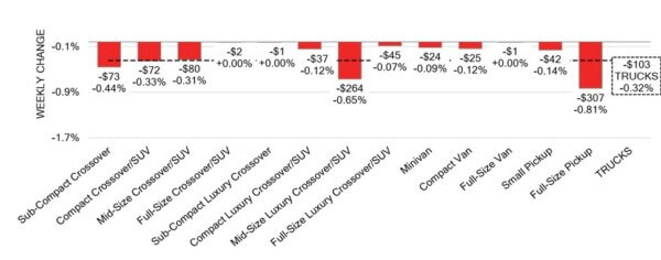 - Three segments had such a nominal softening they showed a 0.00% drop. Those were Full-Size Crossover/SUV, Sub-Compact Luxury Crossover and Full-Size Van.